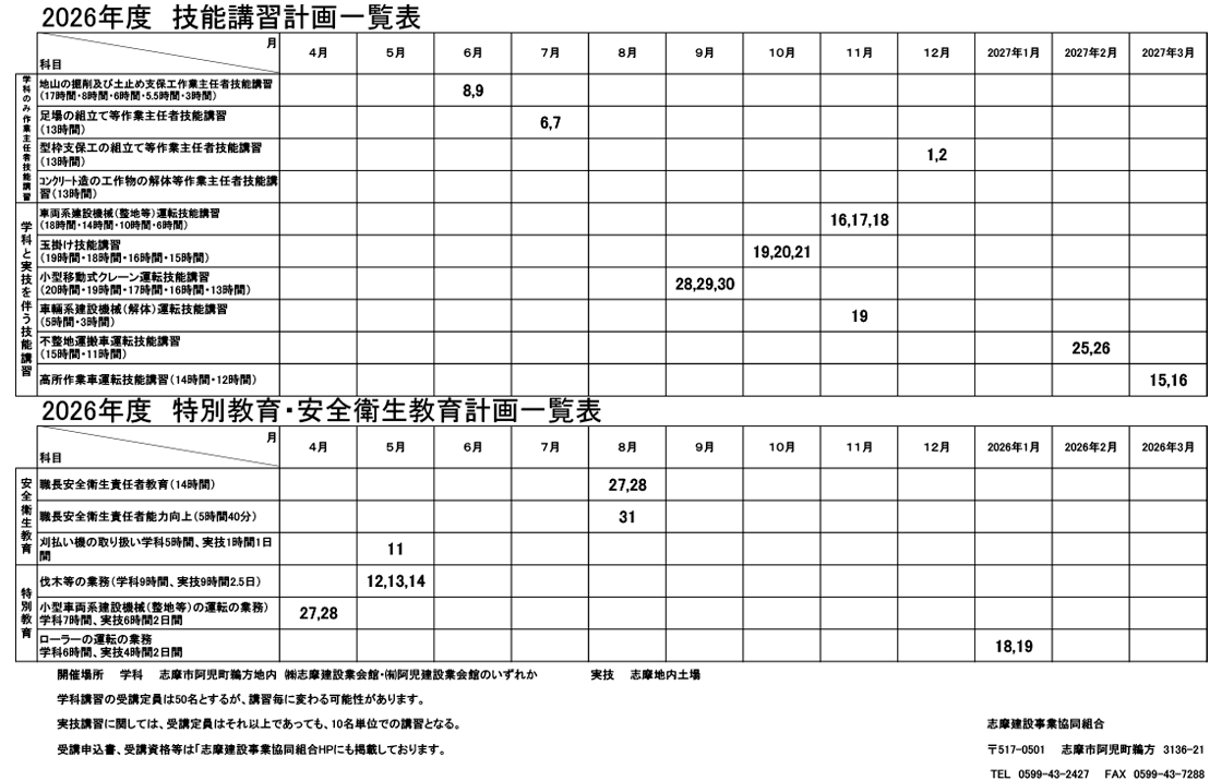 技能講習予定表